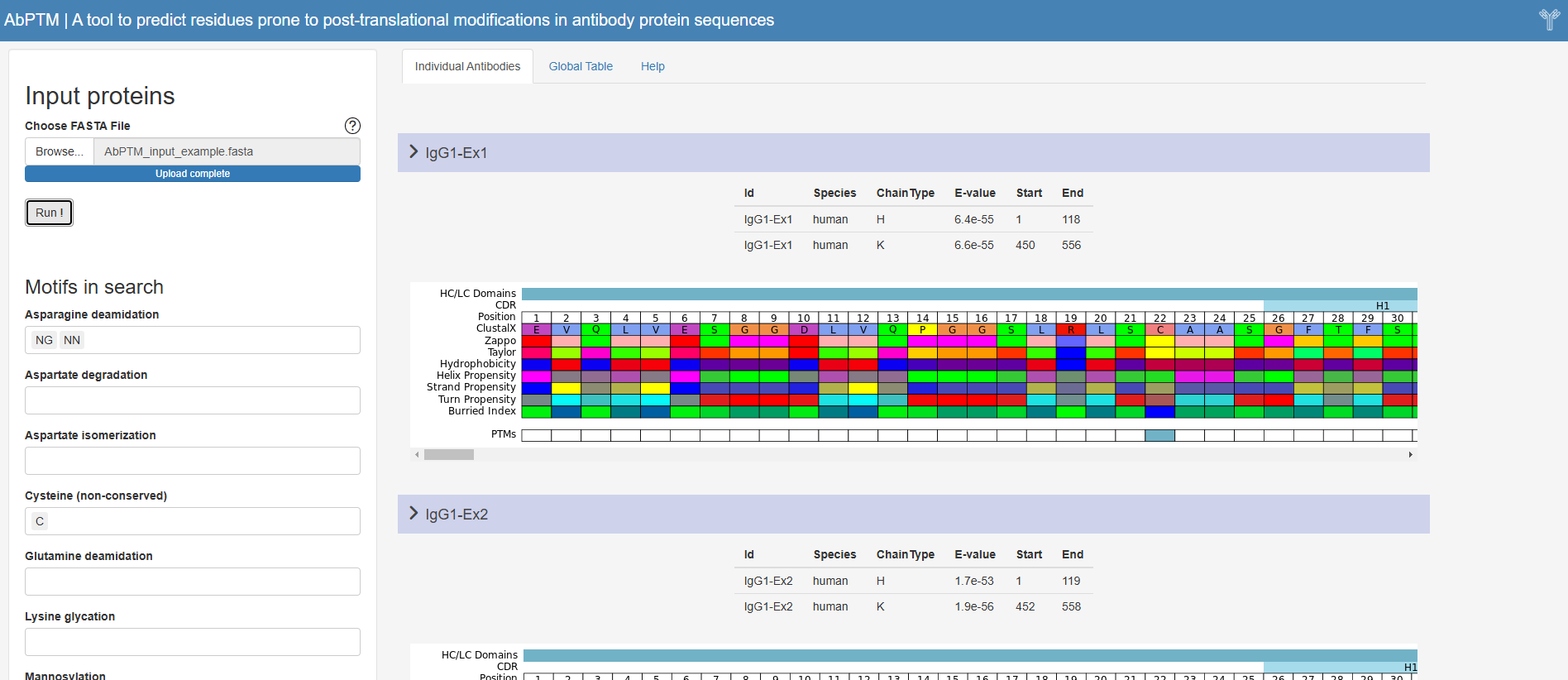 ✔ Indication of residue physicochemical properties using multiple popular schemes